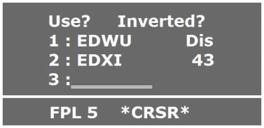 Bei der Eingabe mehrerer WPTs, die nicht alle angezeigt werden können, rollt die Anzeige automatisch, so dass weitere Eingaben möglich sind. Nach Beenden der Eingaben kann mit dem Außenknopf im Flug-plan geblättert werden. Mit Ausschalten der CRSR-Taste wird die Flugplaneingabe beendet.