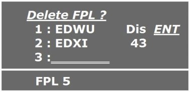 Falls der Flugplan FPL5 indessen nicht gelöscht werden soll, ist statt der Bestätigung mit der ENT-Taste nochmals die ‚CLRTaste’ zu drücken.